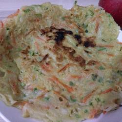2. Shred potatoes and carrots; chop green peppers and shallots; add eggs and flour p>