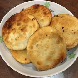 3.Make flour and water into a dough and roll it into a cake sheet.Use one sheet to fill the filling Put another piece of dough on top, then cover it with a small soup bowl and remove the excess dough, so that each round cake appears.
