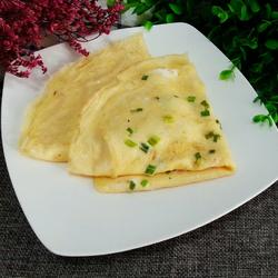 6.Put a little oil in the pot, turn to low heat, pour in the egg batter, shake the pot handle gently to make a thin and round egg cake