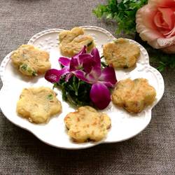 5. Take a pan, put a little oil, use a spoon to scoop the batter into the pan and spread it Form into a round cake and fry until golden brown on both sides.
