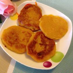 7.The pumpkin was a little thin, so I scooped it up with a medium-sized spoon and put it into the pan to fry, so it was not round