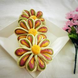 2.The colored dough is kneaded into dough ingredients in order and placed.