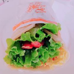 Add the sauce according to the number of people.Otherwise, if there is too much, it will be wasted.If there is too little, you will have to adjust it again.Because the hand cakes are ready-made, it is best to make one and take one from the refrigerator, otherwise The top layer of plastic paper is not easy to tear off after melting, and the frozen cake can be made without affecting the taste at all
