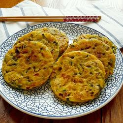 2.Put the eggs Knead into the Sophora japonica flowers and stir evenly
