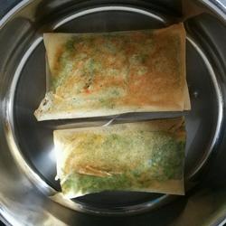 12.Wrap the stuffing Put the pancake box into the pan and fry both sides until golden brown.The delicious pancake, leek and egg box is done! ! !