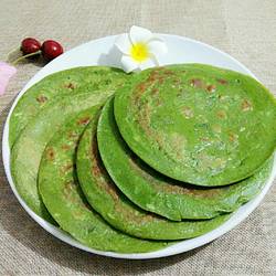 7. Heat the frying pan, apply a little cooking oil to prevent sticking, and use a spoon to scoop in an appropriate amount of batter., slowly turn the pot to spread the batter evenly
