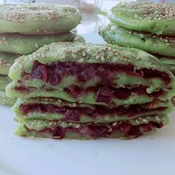 4.Take a piece of dough and press it into a cake with your hands.Put the bean paste on the cake and wrap it up, round it with your hands, and then flatten it into a cake shape.Sprinkle sesame seeds on both sides of the cake.It is best to press it.Otherwise the sesame seeds will fall off easily