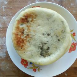 10. Brush the pan with oil, put the cake in and bake it, use low heat.When the cake puffs up, it's ready to be taken out of the pan.