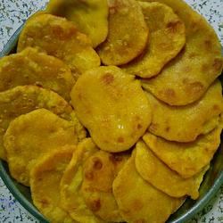 6.Put an appropriate amount of oil in the pan, add the flattened pumpkin cake, and fry until Golden on both sides.