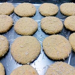 8.Put a little peanut oil in the pan and fry the pumpkin cake over low heat until golden brown.
