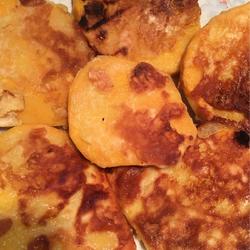 9. Wait until both sides are evenly colored and serve on a plate.The fragrant sweet potato cake is displayed in front of everyone
