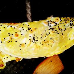 10.Egg liquid After solidification, turn over, brush with sauce, and add fried dough sticks