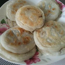 6. Heat the electric baking pan and add vegetable oil.Put the good cakes in, leaving a gap between the cakes.They will expand after being heated.