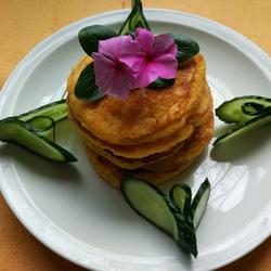 4.Add the beaten eggs to the mixture Use good cornmeal and mix it into a batter, the consistency can flow down the chopsticks