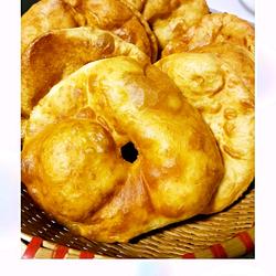 11.Put in the oil cake and turn it on medium-low heat.The oil cake will expand rapidly.Pay attention to the color., flip frequently and fry until both sides are golden.