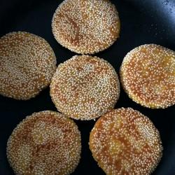 5.Take a small piece of dough and roll it into a round shape, (you can add fillings) and stick it with sesame seeds.Press into cake shape.