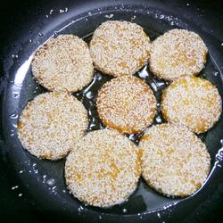 3. After mixing the noodles, they can be divided into small biscuits, dipped in sesame seeds and then put into the pot.