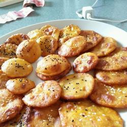 9.Put salad oil in the pot in advance.When it is hot, add the freshly made pumpkin cake and start frying! If it doesn't take too long, turn it over and fry the other side.