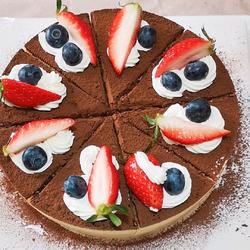 15. After the refrigerated cake, use a hair dryer to blow hot air against the mold for a few seconds., push the cake out from the bottom, and sift a layer of powdered sugar to prevent moisture.