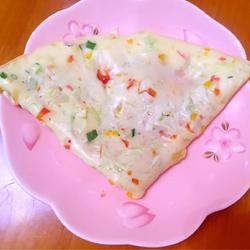6. Preheat the pan and keep the heat low...Scoop a spoonful of paste and quickly turn it away, slowly watch When the surface is slightly brown and the edges are peeling, turn over and continue frying on the other side for a while...Spread your favorite sauce, I put tomato sauce