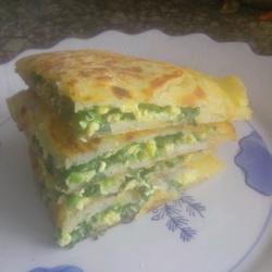 1.Chop the leeks, fry the eggs with oil and mix well with the chopped leeks.
