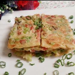 6.Put oil in the pan, pour in the egg liquid, and fry both sides until browned