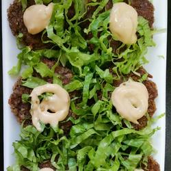 8. Spread half of the shredded lettuce on the bottom of the plate, sprinkle half on the surface, and squeeze on Thousand Island dressing or salad dressing will be fine.