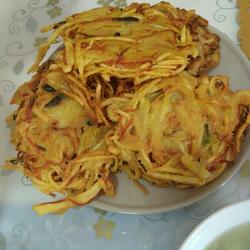 1.Cut potatoes and carrots into shreds and set aside