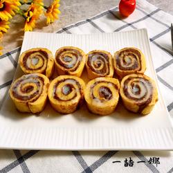8. Spread the bean paste evenly on the cake, roll it up and cut into pieces.(I forgot to take the rolled photo)