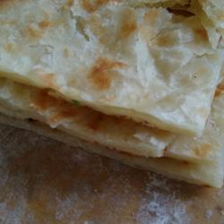8.Put a layer of oil into the pot , you can bake it in the pan until the cake becomes darker in color and bulges, then you can flip it over.After flipping, add oil once (low heat)