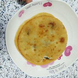 4. Knead the small dough flat, add the pickled cabbage and shredded pork stuffing, and wrap it well Later, use a rolling pin to roll it flat