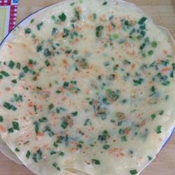 4.Put a little oil in the pot and put Pour in the batter and turn the pan to form a pancake