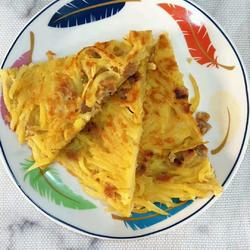 2.Put shredded radish, chopped green onion, shredded potatoes and eggs in a bowl