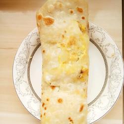 6.Heat the electric baking pan, add oil, roll out the wrapped dough and put it into the electric baking pan