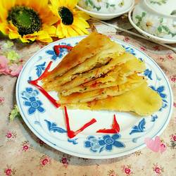 18. Both sides are golden, put on a plate and cut into pieces.This scallion pancake is done!