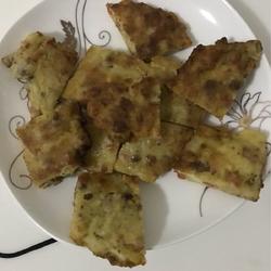 8.After frying, cut into pieces, put on a plate, delicious The mashed potato egg pancake is ready!