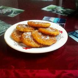 13.Put the fried pumpkin and sesame seeds Put the cake into a plate, sprinkle with sugar, and a plate of pumpkin sesame cake is ready