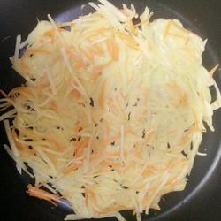 1. Cut potatoes and carrots into shreds and put them into a large bowl.