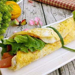 8.Put a few drops of oil into the pan, spread the bottom of the pan evenly, beat an egg into a bowl and twist it up.Pour into the pan and shake the pan to spread the egg liquid evenly into egg pancakes