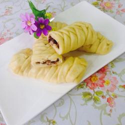 10.Press the dough on both sides like braiding to wrap the red beans in the middle