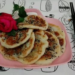 10.Then press it into a thin pancake with your fingers and stick sesame seeds on it.