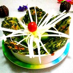 After cutting the green onions and chrysanthemums, soak them in water to make them easy to shape.The vegetable pancakes are fried to a yellow color and taste crispy.