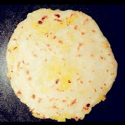 4. Roll out the dough, brush with oil, spread with chopped pineapple, then evenly sprinkle with appropriate amount of salt and dry flour