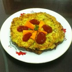 9. Wait until both sides are fried until golden brown, then put it on a plate, and then put tomato sauce on it.In this way, a plate of zucchini and mushroom pancakes is ready, and it tastes crispy on the outside., soft and tender inside, delicious with tomato sauce!