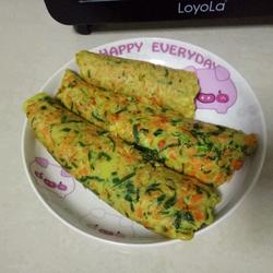1.Chop carrots and lettuce into a large bowl, beat eggs into a large bowl, and add flour