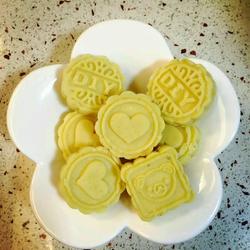 4.Turn off the heat, add mung bean paste and mix well, let cool and divide the mung bean paste into 30-50 grams Knead the small pieces into smooth balls with your hands and press them into flower shapes with a mooncake mold.