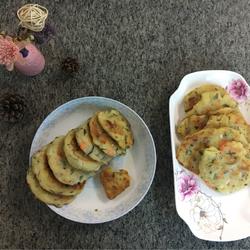 9.Make the potato pancakes into small circles and pat them flat.Enter the electric pancake stall for frying