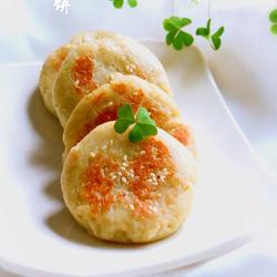 4.Make a cake of even size and thickness, stick some white sesame seeds on it, use a non-stick pan with a little oil, and bake until both sides are golden brown,