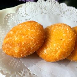 13. Apply a little corn oil on the palms of your hands, make a round pumpkin cake with both palms, and apply oil to prevent it from sticking to your hands