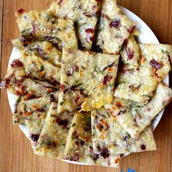 1.Grate the potatoes! Then chop it into cubes with a knife! Wash and shred the amaranth! Chop the cranberries! Add shrimp! pepper! Ginger powder! pepper powder! Salt! Add more flour! Add water and mix well!